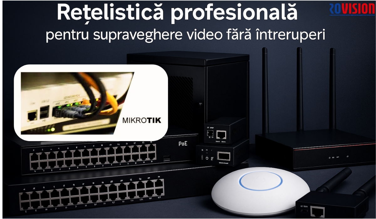 Aplicata sistemelor moderne de supraveghere video, retelistica devine coloana vertebrala a infrastructurii: asigura conexiunile intre camere IP, switch-uri PoE, routere si NVR-uri, asigurand transportul fluxurilor video fara pierderi, alimentarea stabila a camerelor, segmentarea traficului si protectia impotriva accesului neautorizat.
