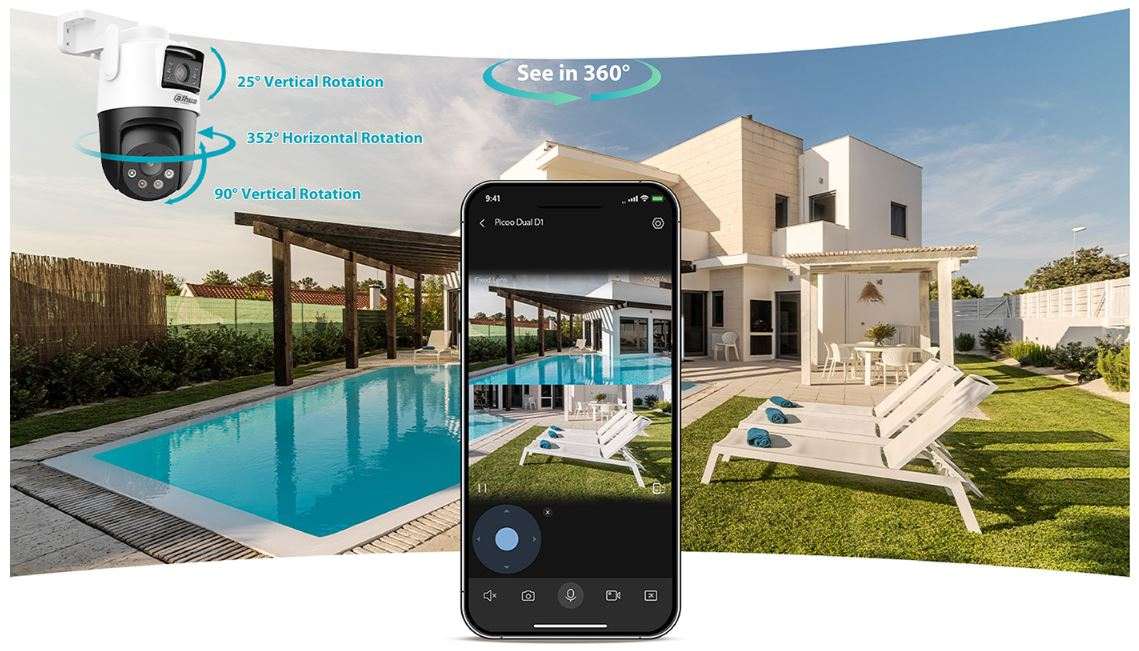 Lentila pan/tilt de 6 mm pentru apropiere optica si urmarire detaliata, cu rotire orizontala pana la 352° si inclinare verticala pana la 90°, oferind flexibilitate maxima de monitorizare.