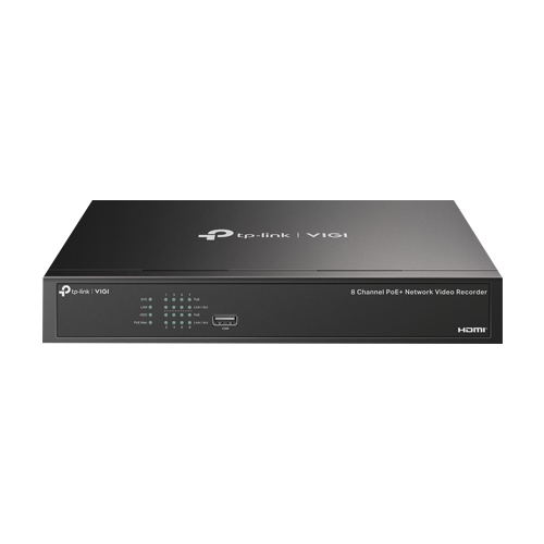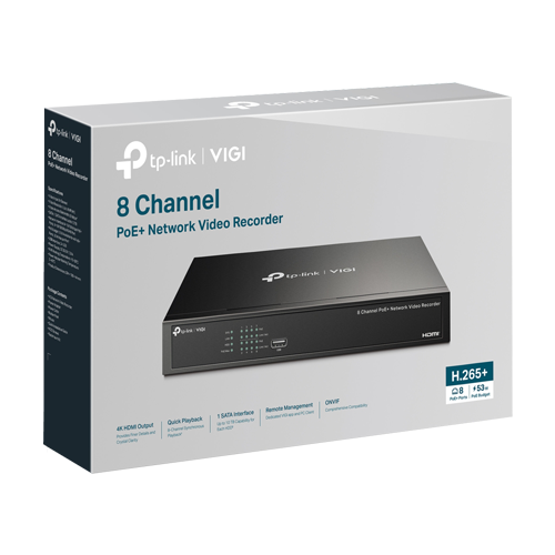 Specificatii tehnice NVR 4K, 8 canale max. 8MP, 8 porturi PoE, Buget PoE 53W, Audio IN/OUT, 1 x SATA, 1U – TP-Link VIGI: