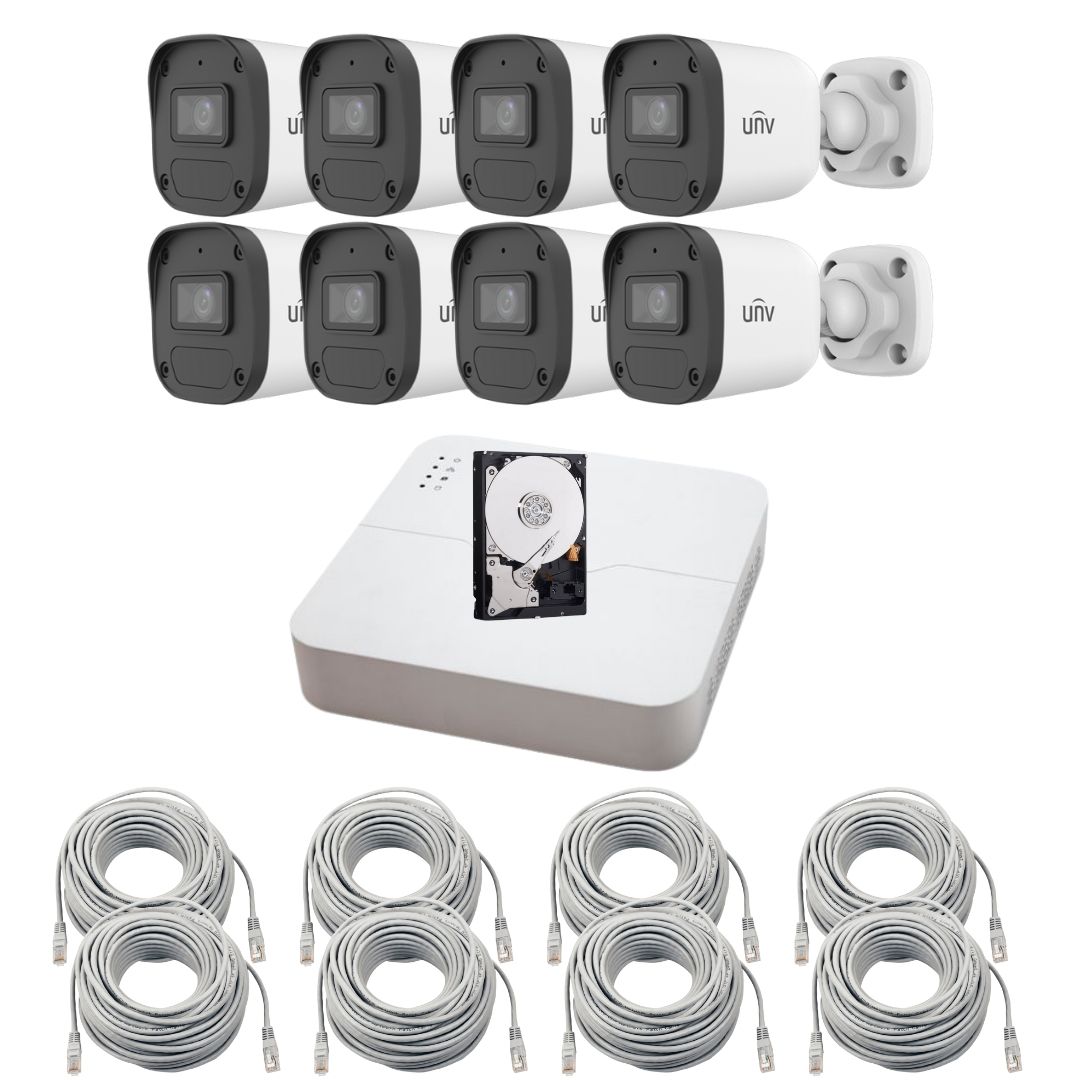 - 8 x Camera IP 4MP, lentila 2.8mm, Smart IR 30m, Mic, PoE, IP67- UNV IPC2124LB-AF28-ECO