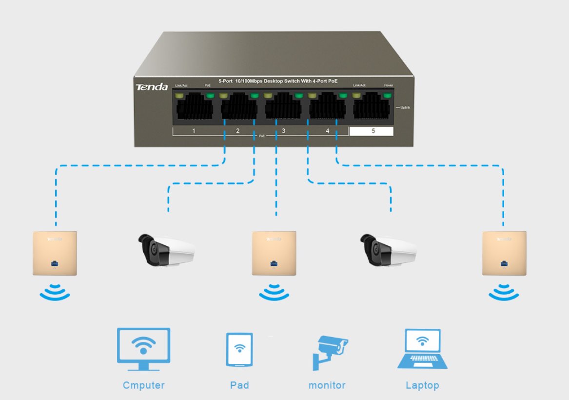 - Standarde: IEEE 802.3 IEEE 802.3u IEEE 802.3x IEEE 802.3af IEEE 802.3at
