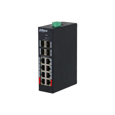 - Dahua HS4412‑8ET‑120 cu 8 porturi RJ‑45 10/100 Mbps PoE si 4 porturi SFP 1000 Mbps uplink